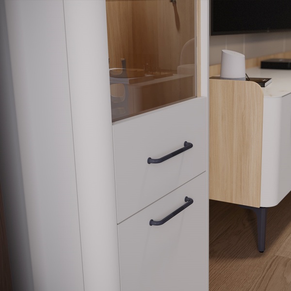 - Usa de la vitrina inalta din partea de sus poate fi montata atat cu deschidere pe partea dreapta cat si cu deschidere pe partea stanga