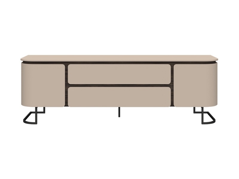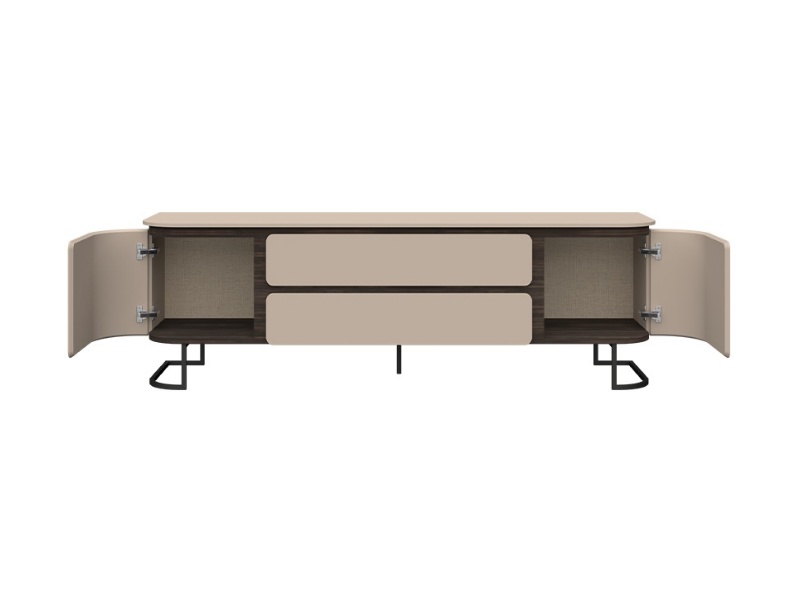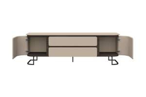 Comoda TV cu 2 usi si 2 sertare AURA 182x58x46cm mocca/ stejar Baroc, picioare antracit