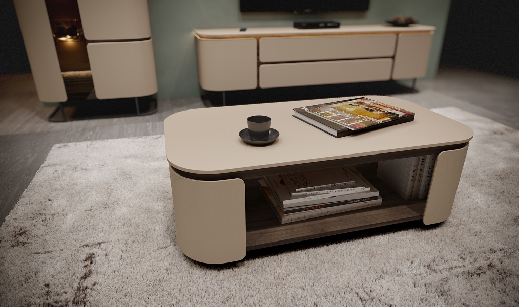 - Masuta de cafea are roti pentru o manipulare mai usoara in incapere
