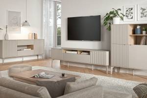 Comoda inalta BELUCI 97x116x40cm casmir/ stejar cremona, picioare metal casmir