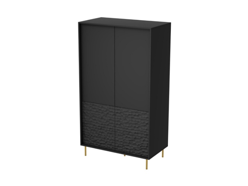 Comoda inalta cu 4 usi BULLET 90x185x53cm negru, picioare aurii