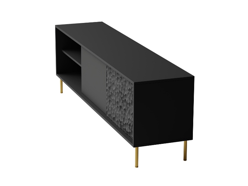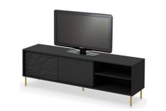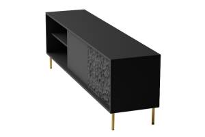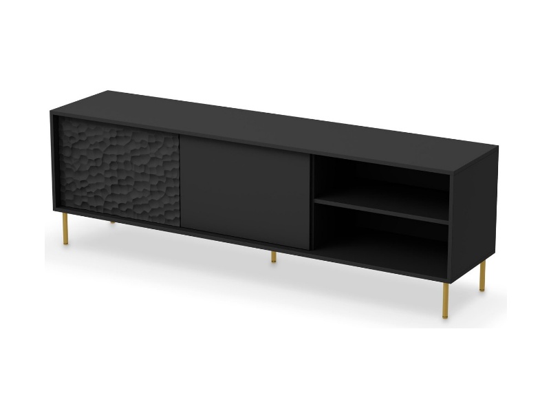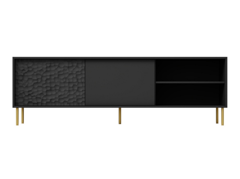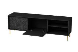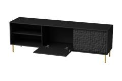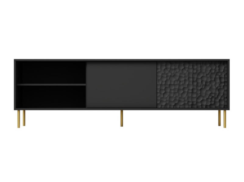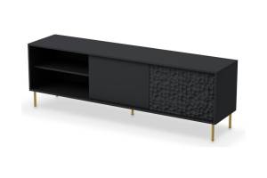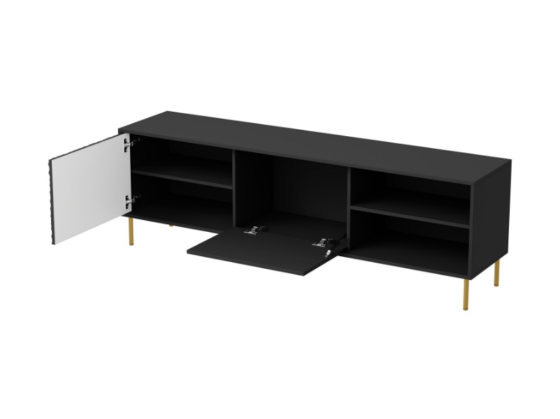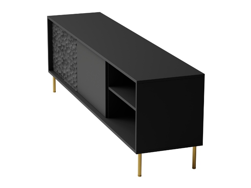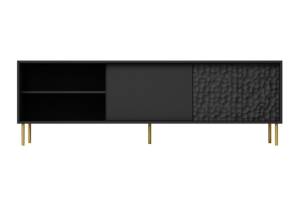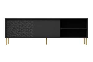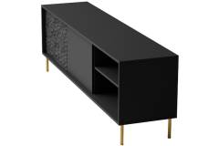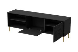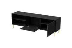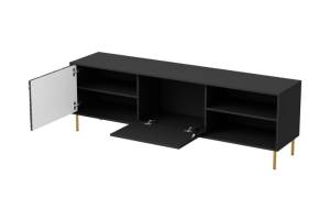 Comoda TV cu 2 usi si raft liber BULLET 180x58x41cm negru, picioare aurii