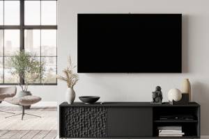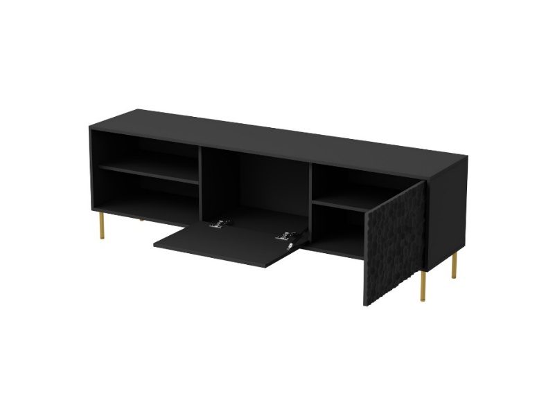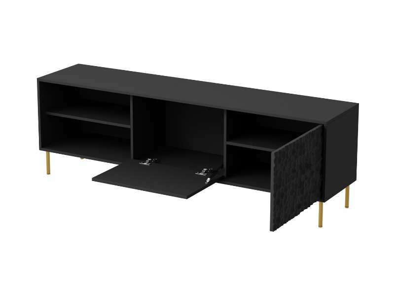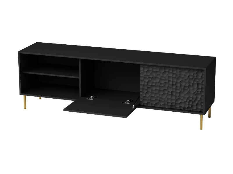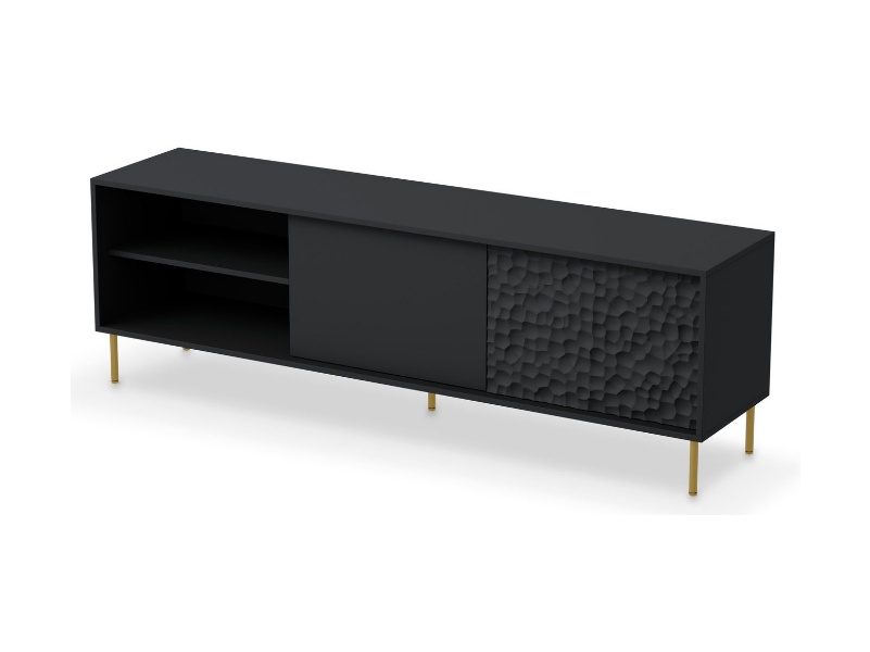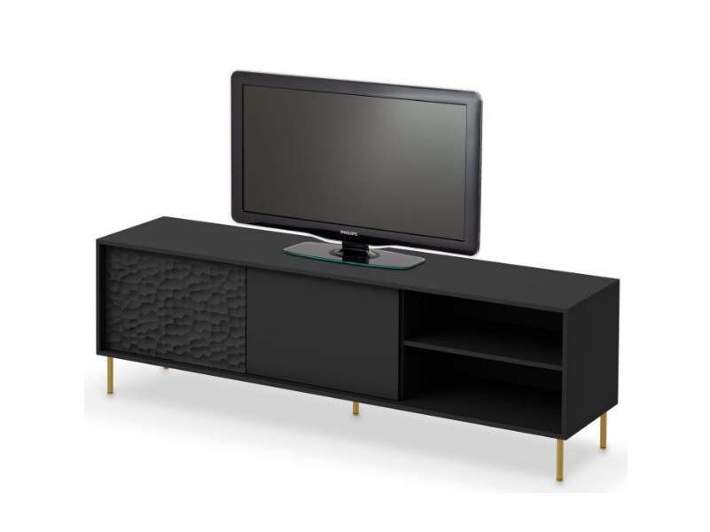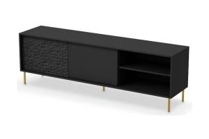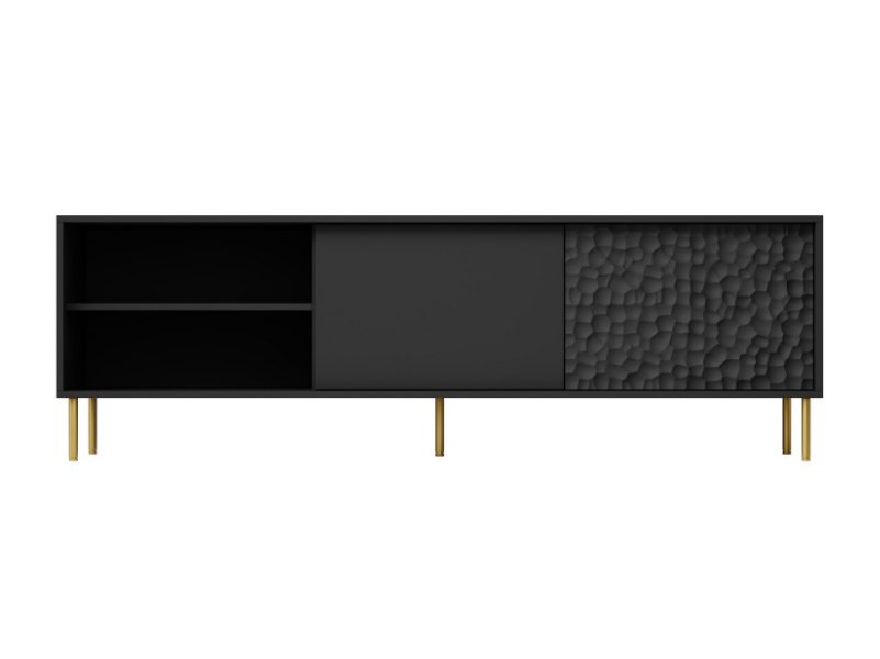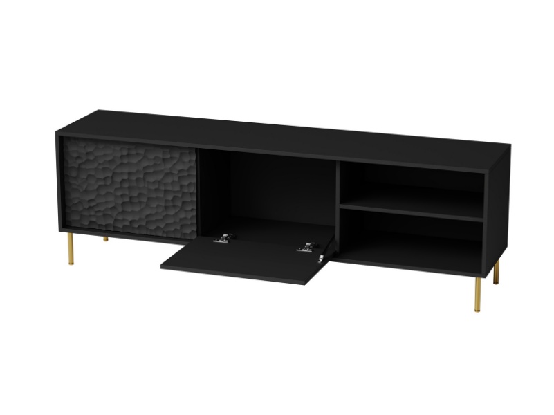 Comoda TV cu 2 usi si raft liber BULLET 180x58x41cm negru, picioare aurii