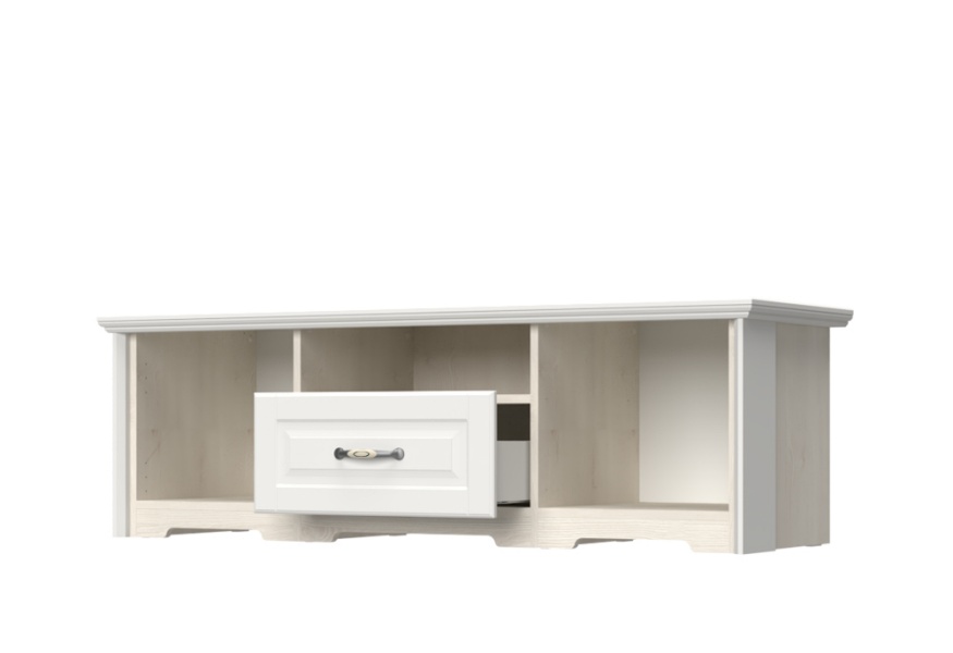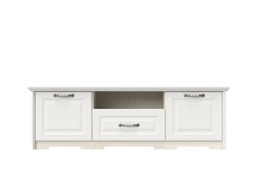 Comoda TV cu 2 usi, 1 sertar si spatiu liber EVERGREEN 159x51x55cm ivory/ pin polar
