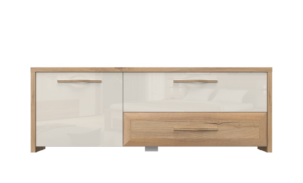 Comoda TV cu 1 usa si 2 sertare GALA 135x48x46cm bej lucios/ nuc Pacific