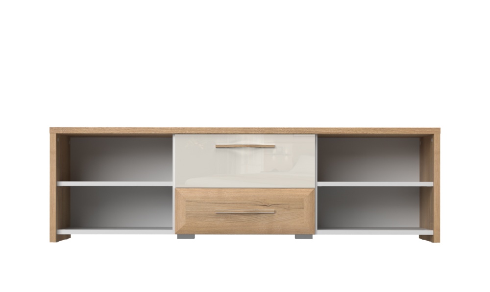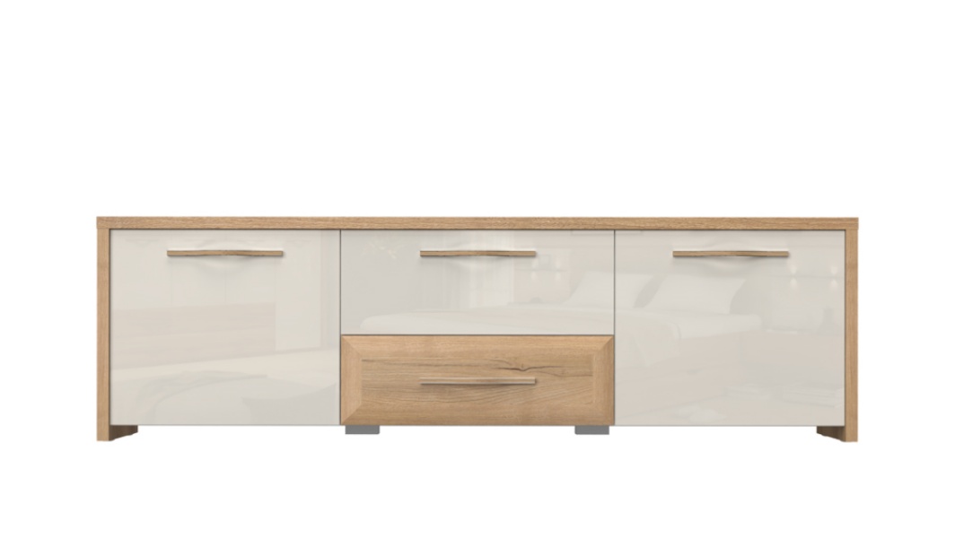 Comoda TV cu 2 usi si 2 sertare GALA 161x48x46cm bej lucios/ nuc Pacific