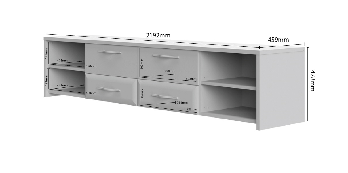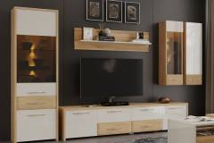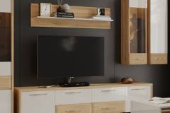 - patru sertare si doua usi, decor bej lucios (lac UV) si nuc Pacific