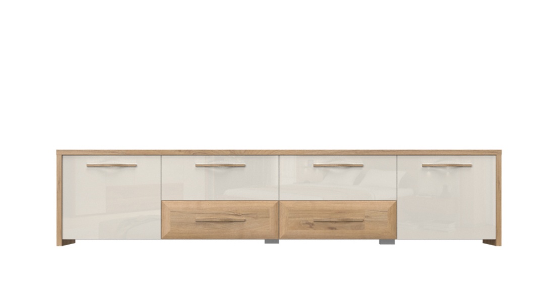 Comoda TV cu 2 usi si 4 sertare GALA 219x48x46cm bej lucios/ nuc Pacific