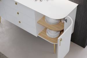 - fronturile rotunjte din Furnir de lemn rezistent, vopsit cu lac UV in nuanta alb mat