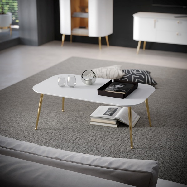 - blat rotunjit din MDF 3D (18 mm) vopsit cu lac UV in nuanta alb mat