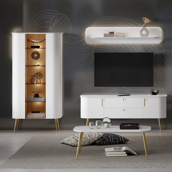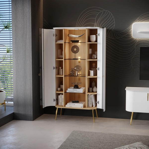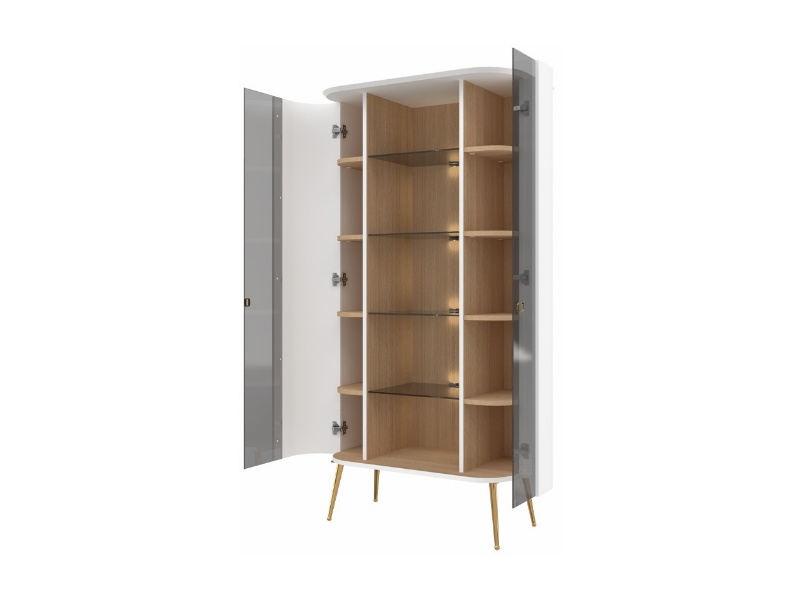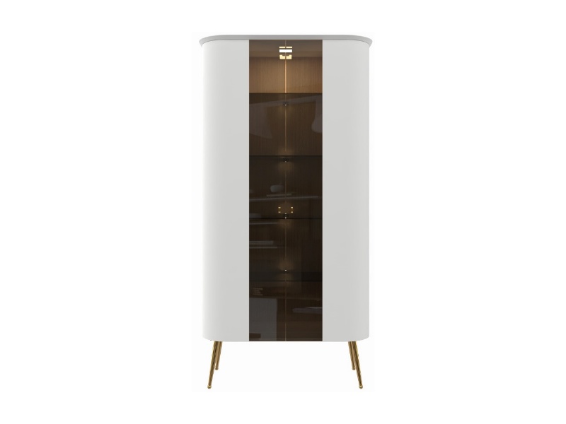 Vitrina cu 2 usi sticla Parsol GALET 91x179x47 cm alb mat, picioare si manere auriu neon
