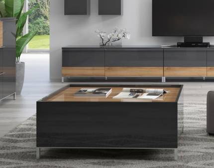 Masuta cu 2 sertare pentru depozitare ONYX 90x90x37cm antracit lucios/ nuc Pacific, picioare crom