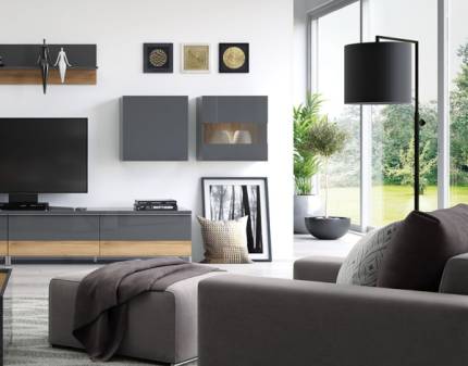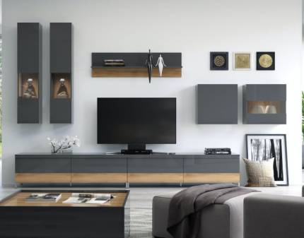 Polita suspendata ONYX 128x35x21cm antracit lucios/ nuc Pacific