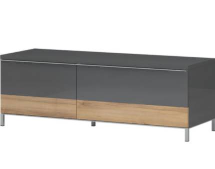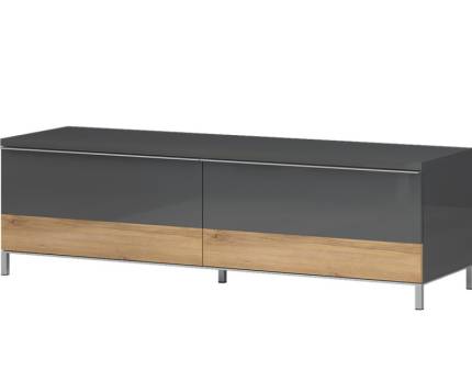 Comoda TV cu 2 sertare ONYX 152x46x45cm antracit lucios/ nuc Pacific, manere si picioare crom