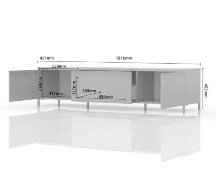 Comoda TV cu 2 usi si 1 sertar ONYX 188x46x45cm antracit lucios/ nuc Pacific, manere si picioare crom