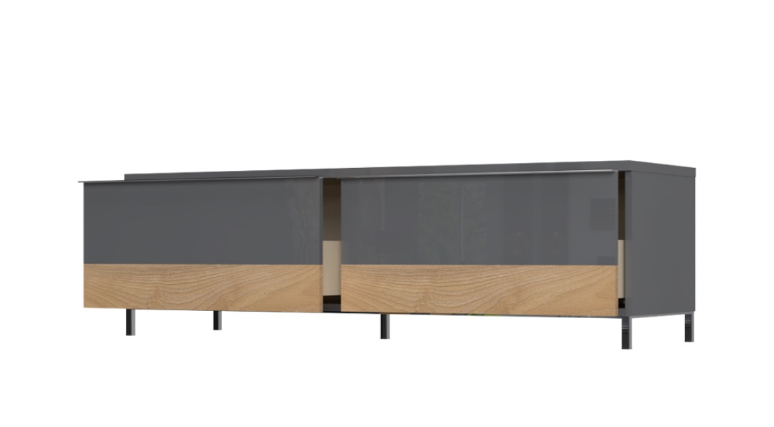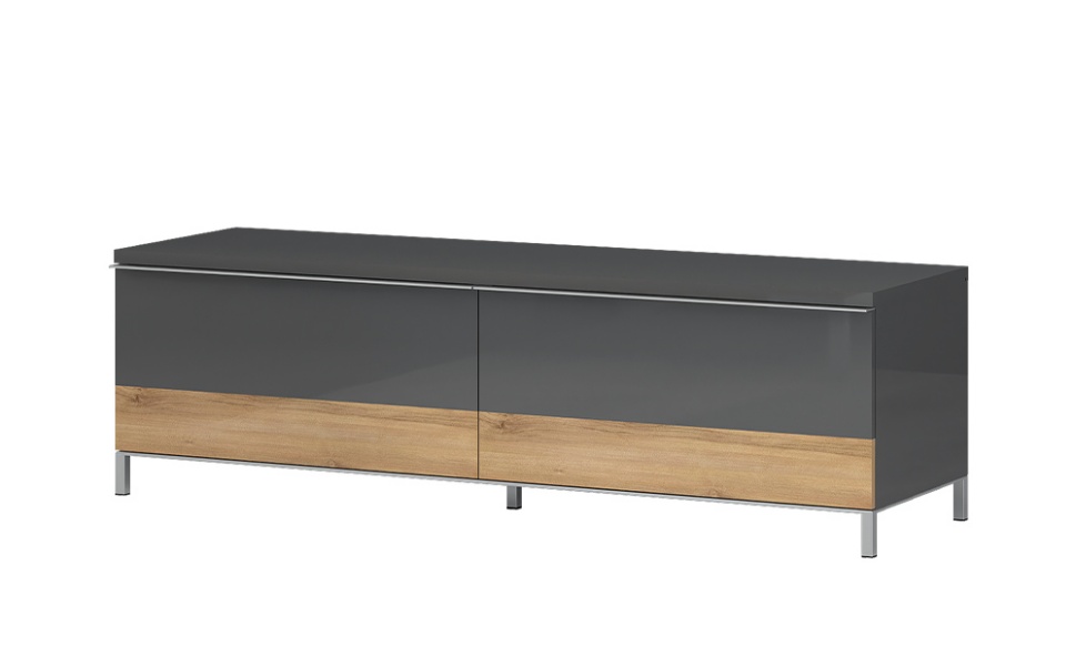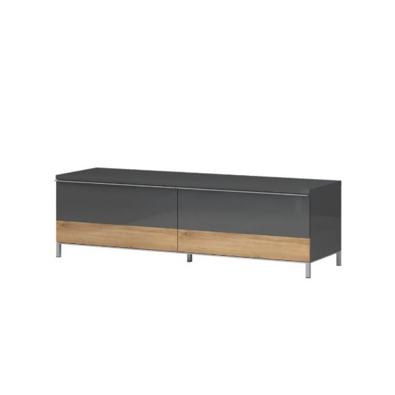 Comoda TV cu 2 sertare ONYX 152x46x45cm antracit lucios/ nuc Pacific, manere si picioare crom