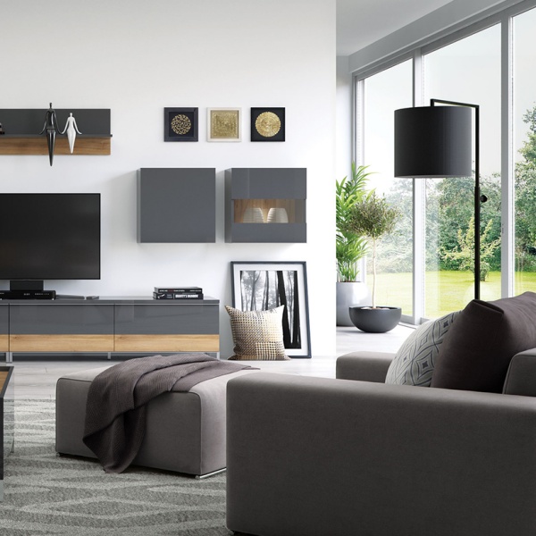 - doua usi (18mm), decor antracit lucios si nuc Pacific