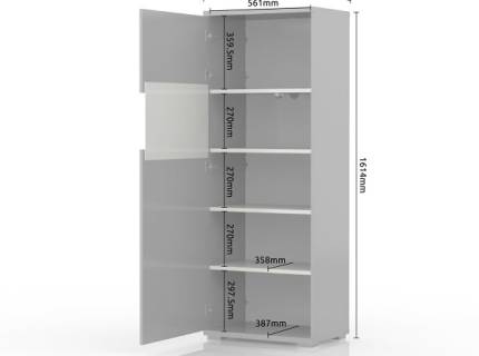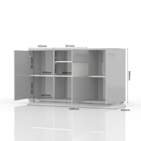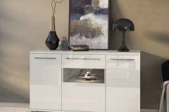 Comoda cu 3 usi cu sticla PIANO BEIGE 150x85x45cm bej lucios - sticla, manere si picioare crom