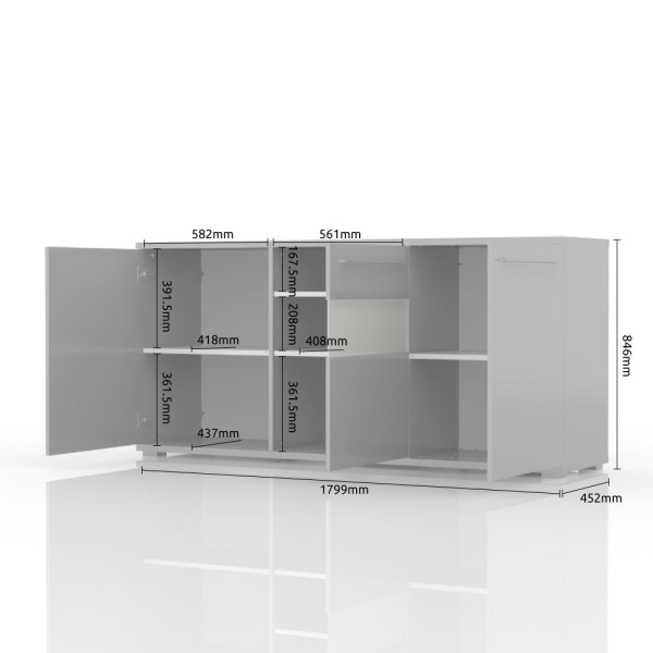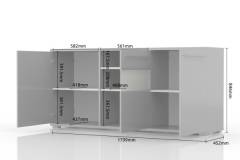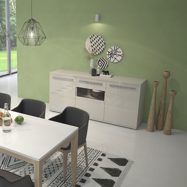 Comoda cu 3 usi cu sticla PIANO BEIGE 180x85x45cm bej lucios - sticla, manere si picioare crom