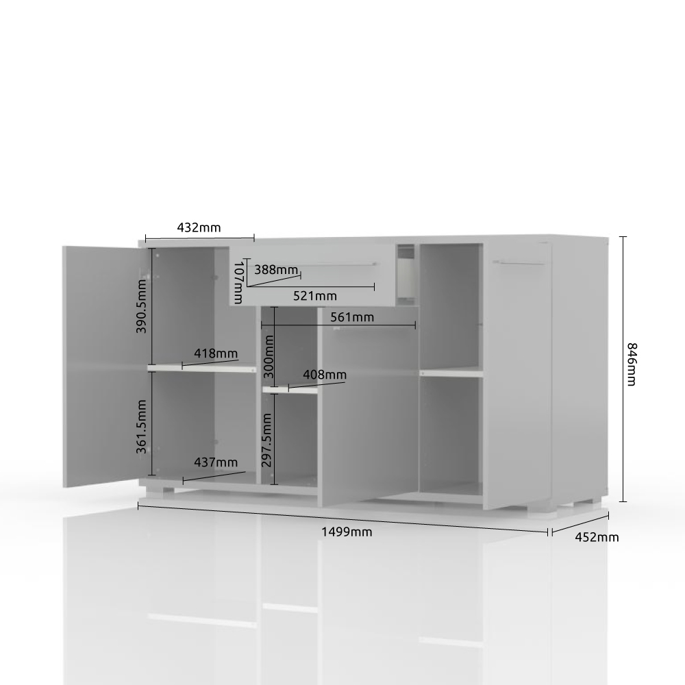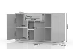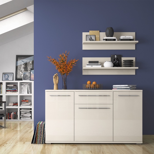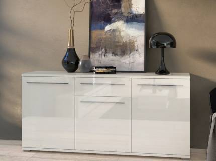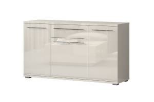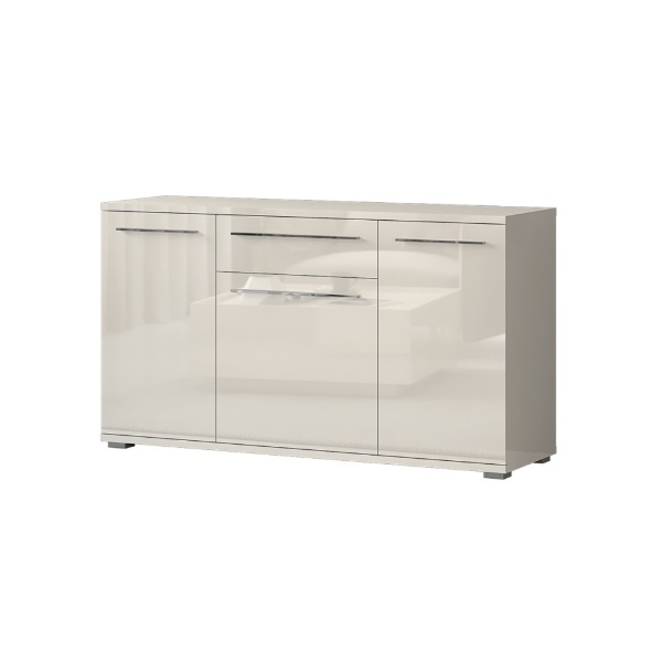 Comoda cu 3 usi si 1 sertar PIANO BEIGE 150x85x45cm bej lucios, manere si picioare crom