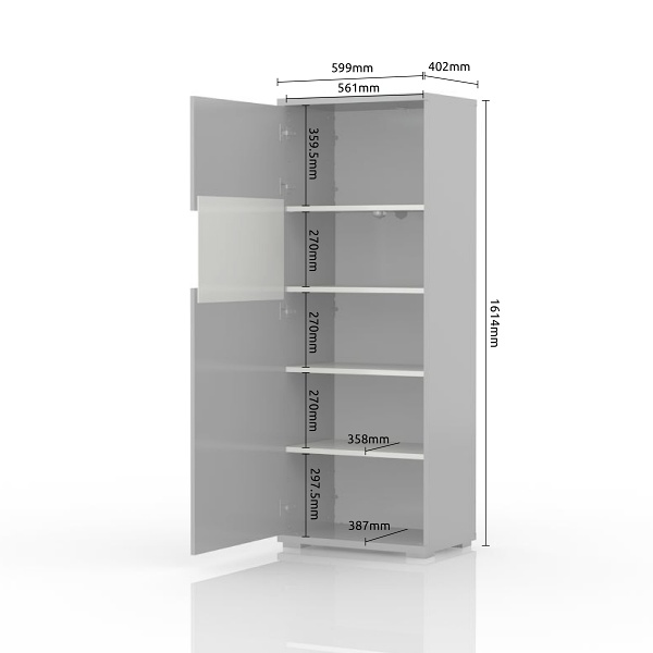 Vitrina inalta cu 1 usa cu sticla PIANO BEIGE 60x161x40cm bej lucios - sticla, maner si picioare crom