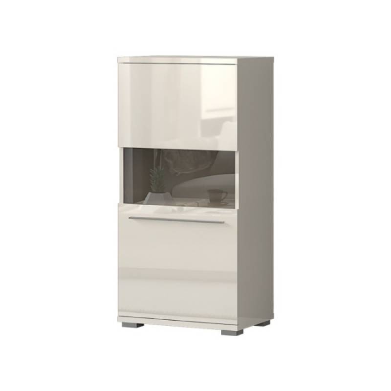 Vitrina medie cu sticla PIANO BEIGE 60x123x40cm bej lucios - sticla, maner si picioare crom