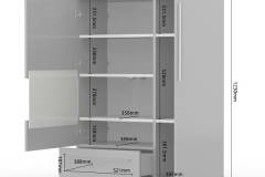 Vitrina lata cu 2 usi cu sticla si 1 sertar PIANO WHITE 90x123x40cm alb lucios - sticla, manere si picioare crom