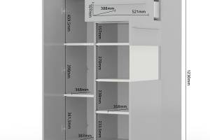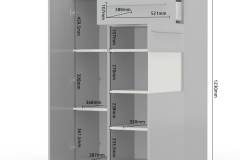 - doua usi si un sertar, decor alb lucios, detalii din sticla