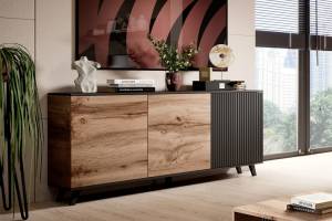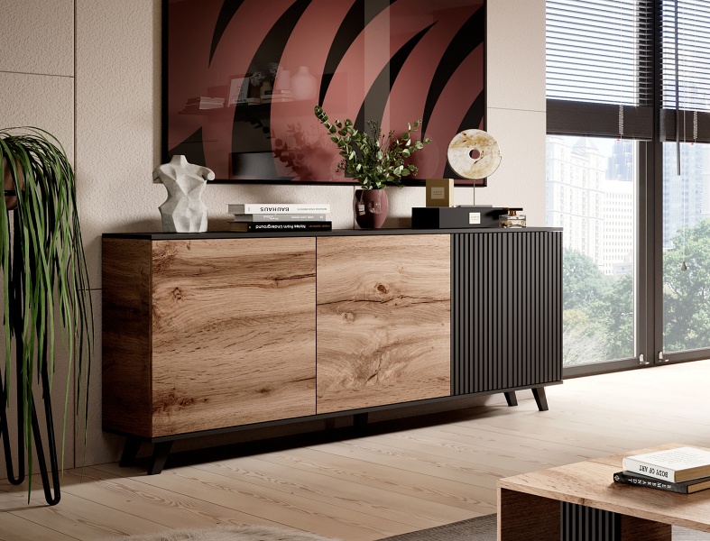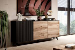 Comoda cu 3 usi KM-1 RANDOM 160x82x40cm stejar/ negru