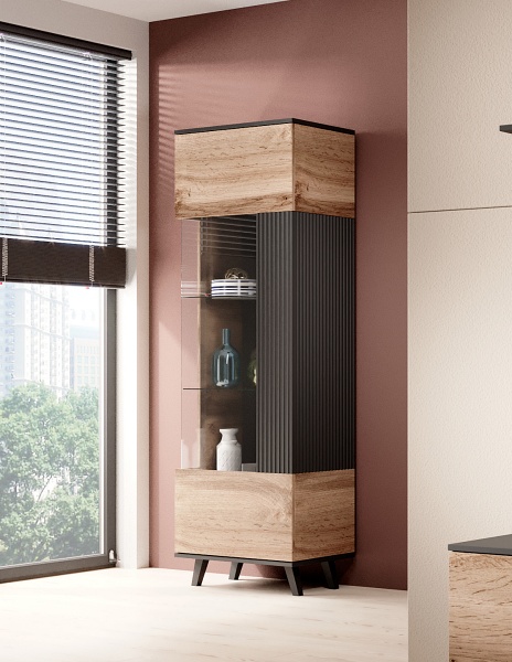 Vitrina inalta cu usa din sticla W-1 RANDOM 60x182x40cm stejar/ negru