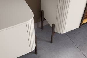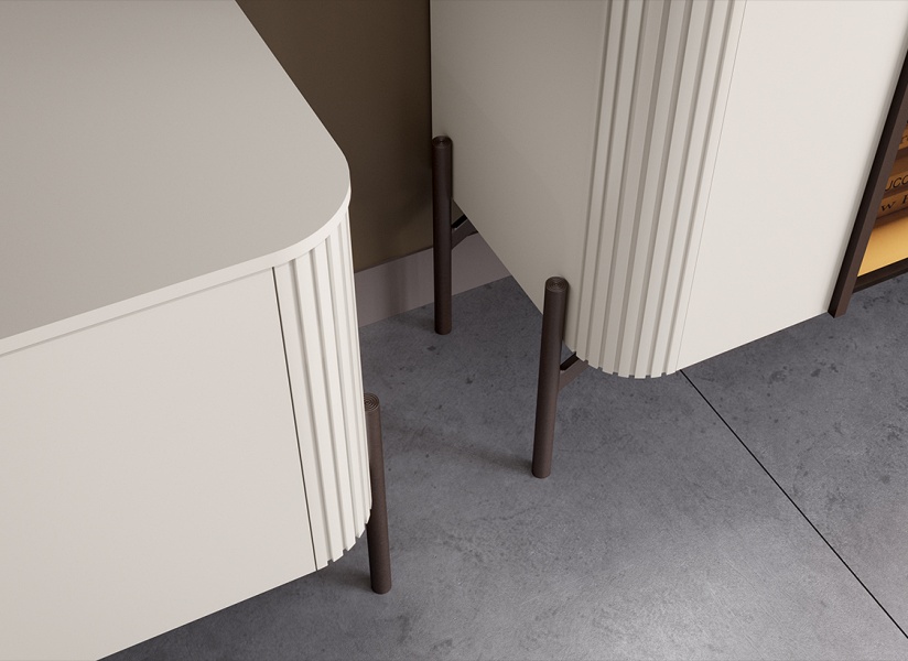 - panouri laterale si fund din MFC (30mm - partea vizibila 12mm si partea ascunsa 18mm) vopsit in nuanta casmir