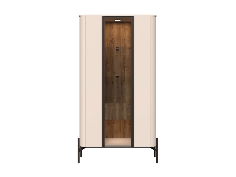 Vitrina cu 2 usi cu sticla RONDO 94x180x41cm casmir/ sticla fumurie, picioare si manere Midnight Copper