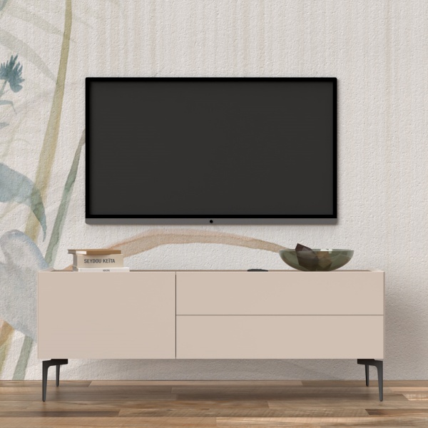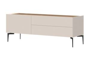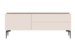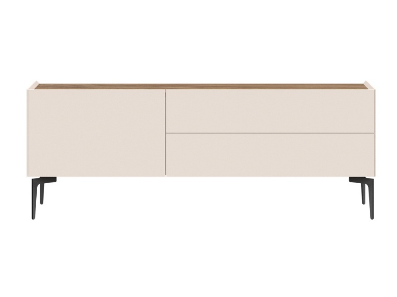 Comoda TV cu picioare negre, 1 usa si 2 sertare SKY 45 147x56x47cm casmir/ stejar tabac