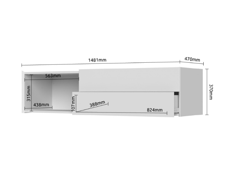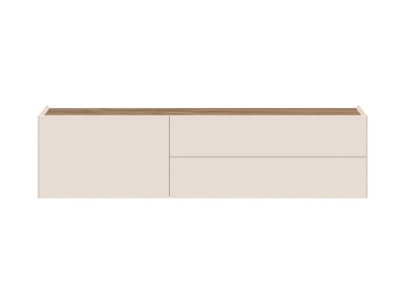 Comoda TV suspendata cu 1 usa si 2 sertare SKY 45 148x37x47cm casmir/ stejar tabac