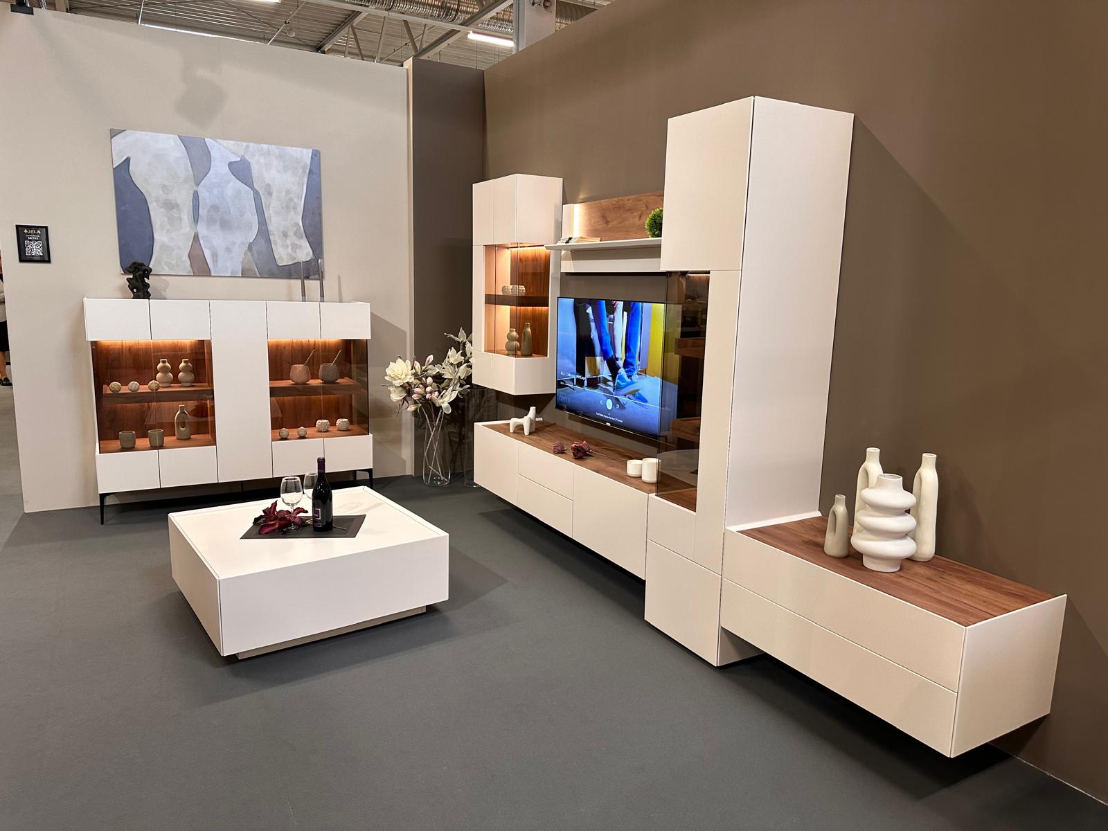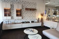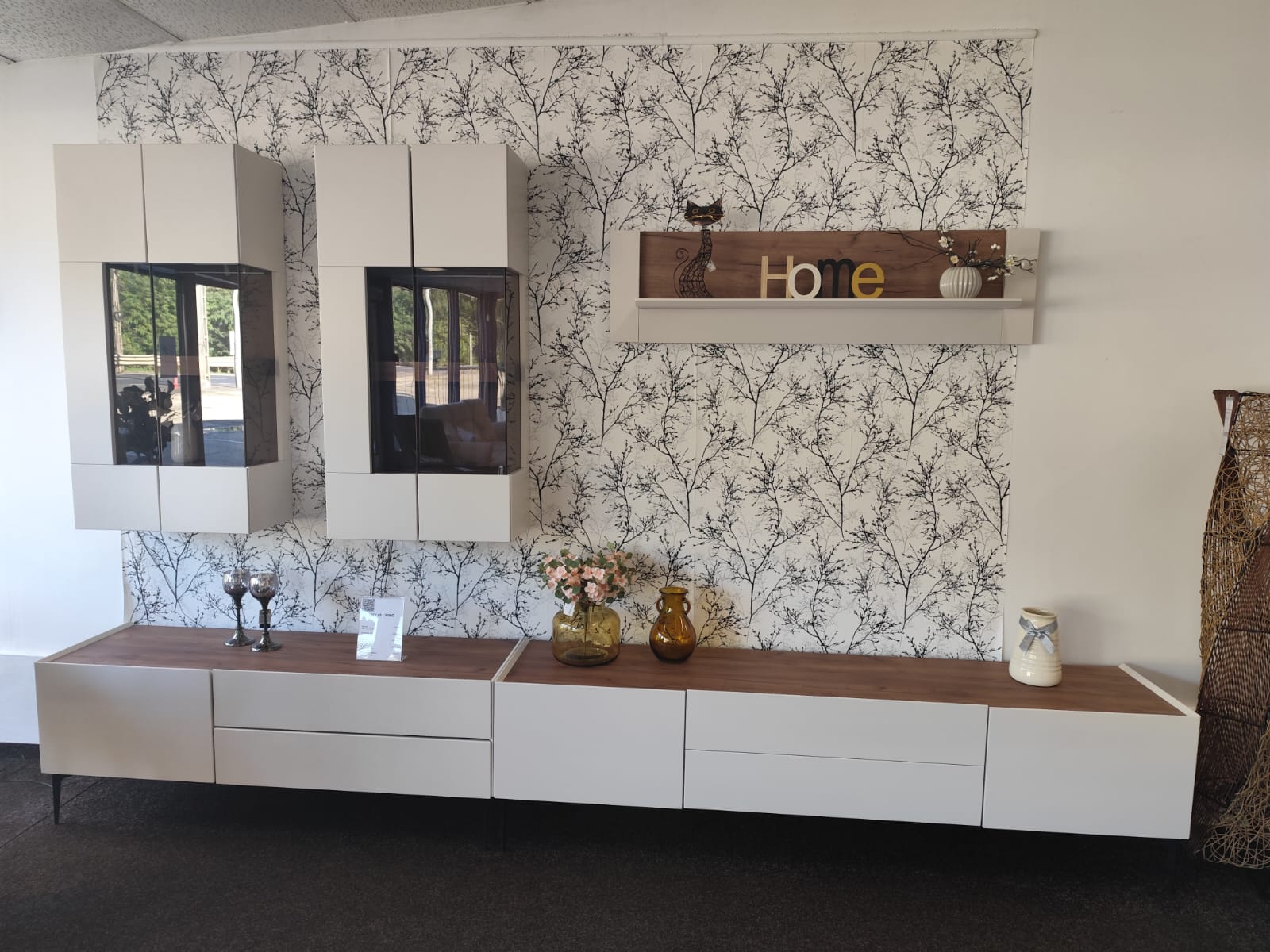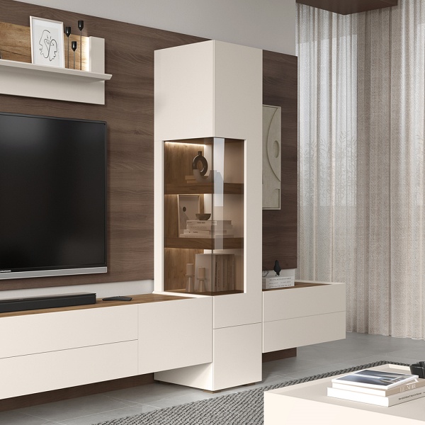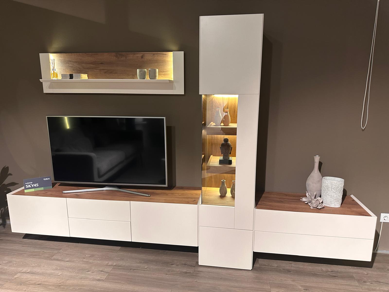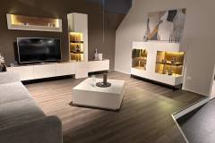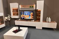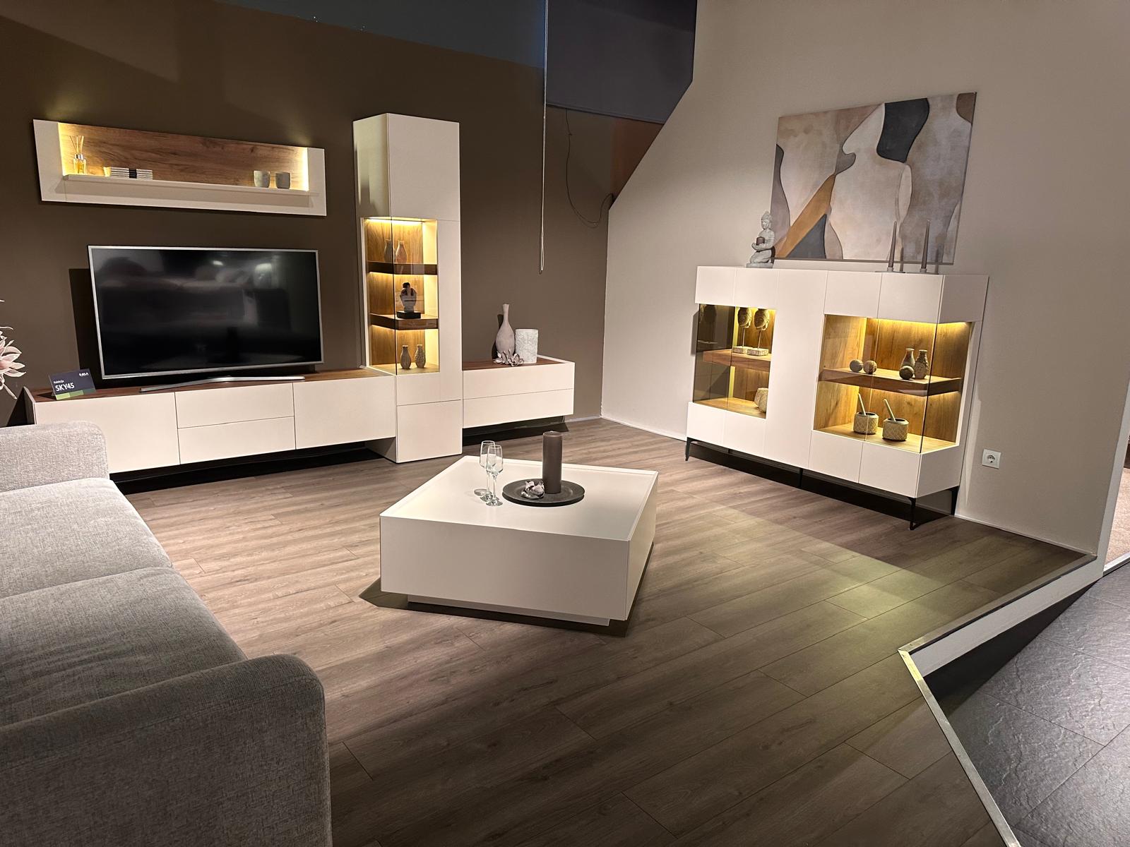 Pretul afisat nu include comoda din lateral, masuta, panoul de pe perete, montajul, alte piese de mobilier si accesoriile din imaginea de prezentare a produsului.