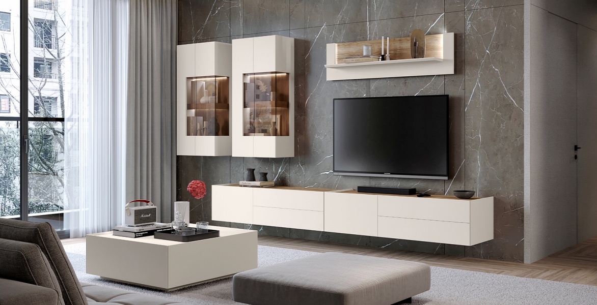 Pretul afisat nu include comoda din lateral, masuta, montajul, alte piese de mobilier si accesoriile din imaginea de prezentare a produsului.