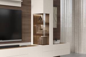 Vitrina inalta cu led SKY 45 45x201x47cm casmir/ stejar tabac - sticla