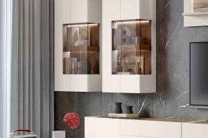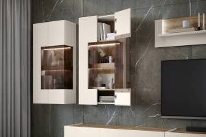 Vitrina suspendata cu led SKY 45 62x125x30cm casmir/ stejar tutun - sticla