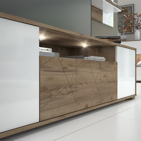 - doua usi si un sertar MDF decor alb cristal lucios / stejar Tobacco