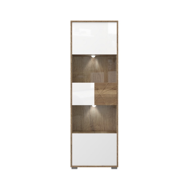 - o usa MDF decor alb cristal lucios / stejar Tobacco, detalii din sticla temperata (4mm)