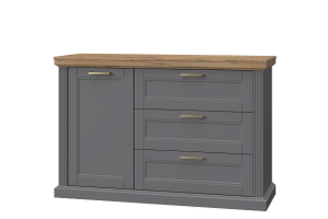 Comoda cu 1 usa si 3 sertare TARA GREY 138x91x48cm grafit mat/ nuc Pacific