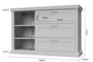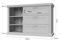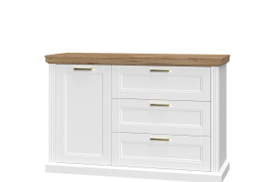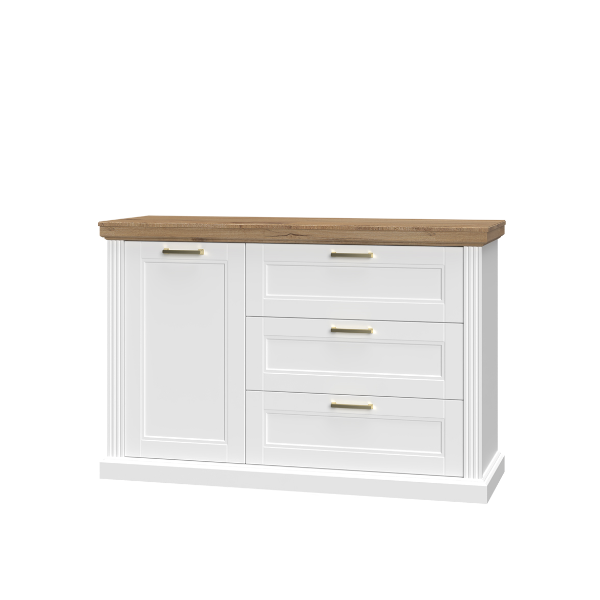 Comoda cu 1 usa si 3 sertare TARA WHITE 138x91x48cm alb mat/ nuc Pacific