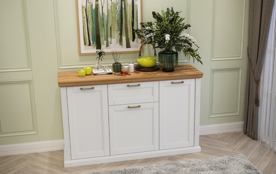 Comoda cu 3 usi si 1 sertar TARA WHITE 167x102x48cm alb mat/ nuc Pacific