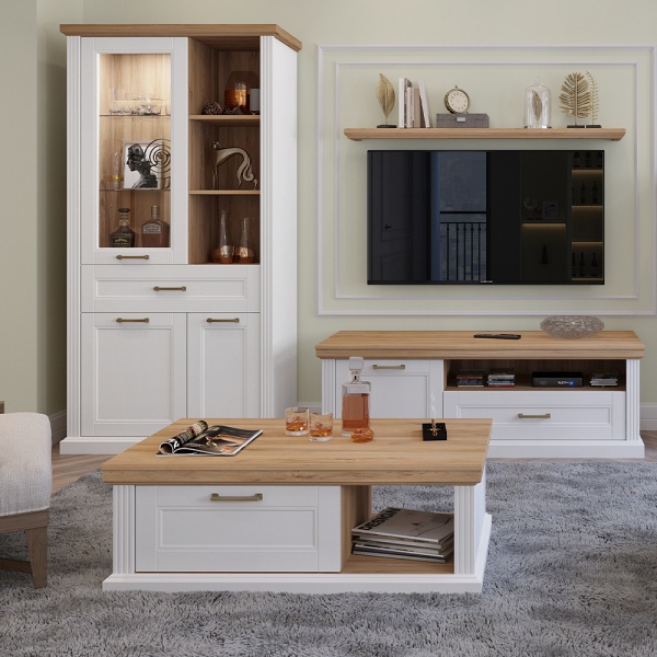 Masuta cu 1 sertar pentru depozitare TARA WHITE 110x61x40cm alb mat/ nuc Pacific