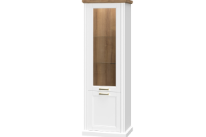 Vitrina inalta cu 2 usi cu sticla TARA WHITE 66x200x48cm alb mat/ nuc Pacific