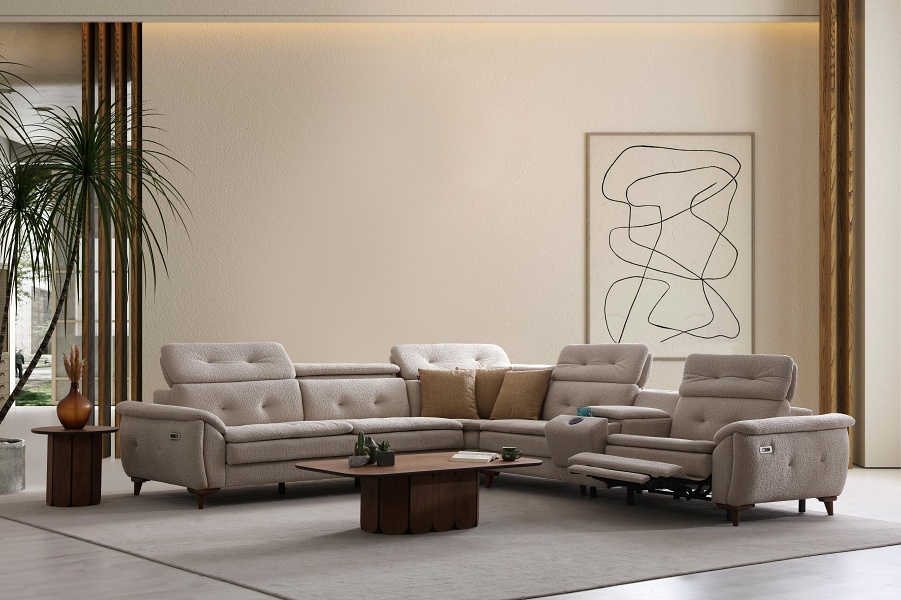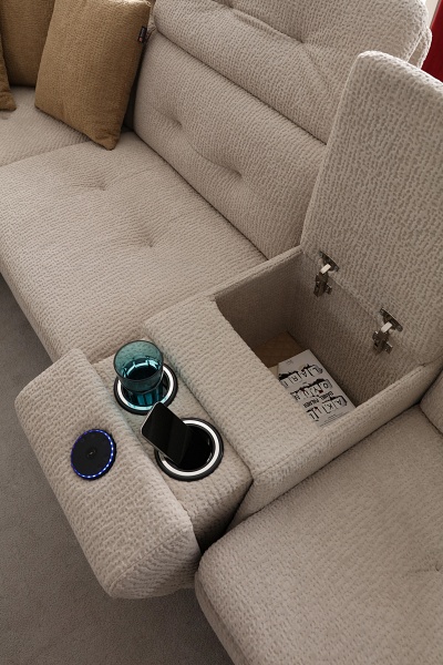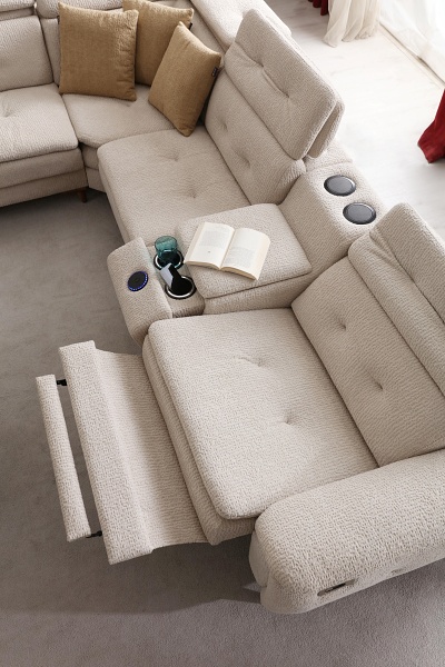 Alte caracteristici: tetiere reglabile, sezut reglabil, 1 recliner tv, sound system, cooler, sistem incarcare USB)