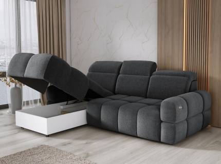 Coltar extensibila ATHOS cu lada pentru depozitare, personalizabil 292x190cm