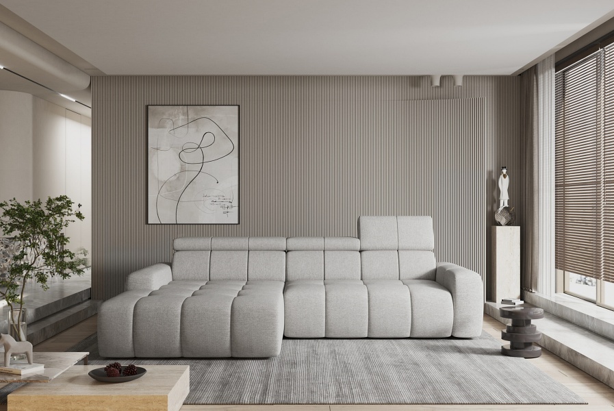Coltar cu reglaj electric ENZO S cu lada pentru depozitare, tetiere reglabile, personalizabil 276x177cm