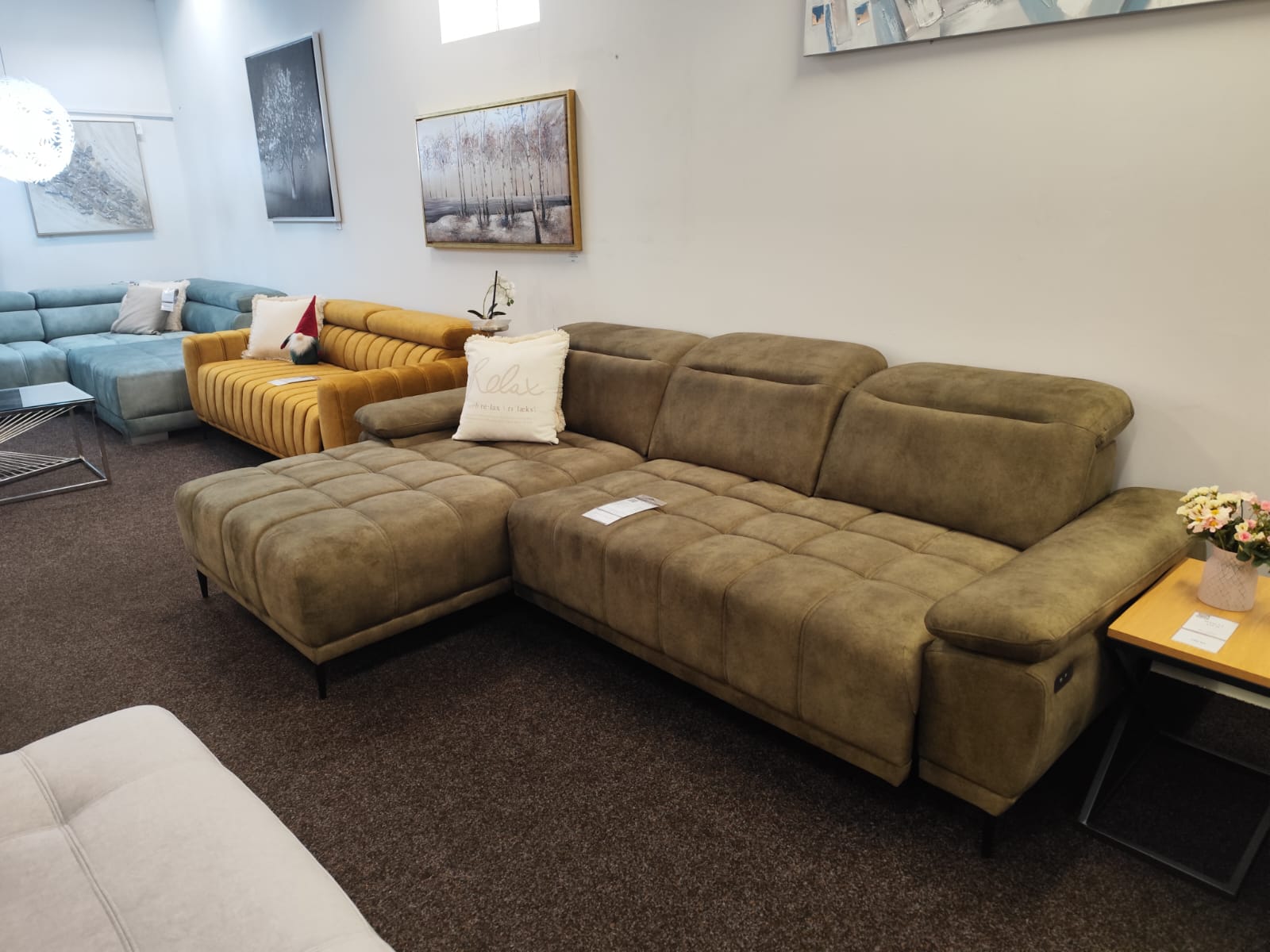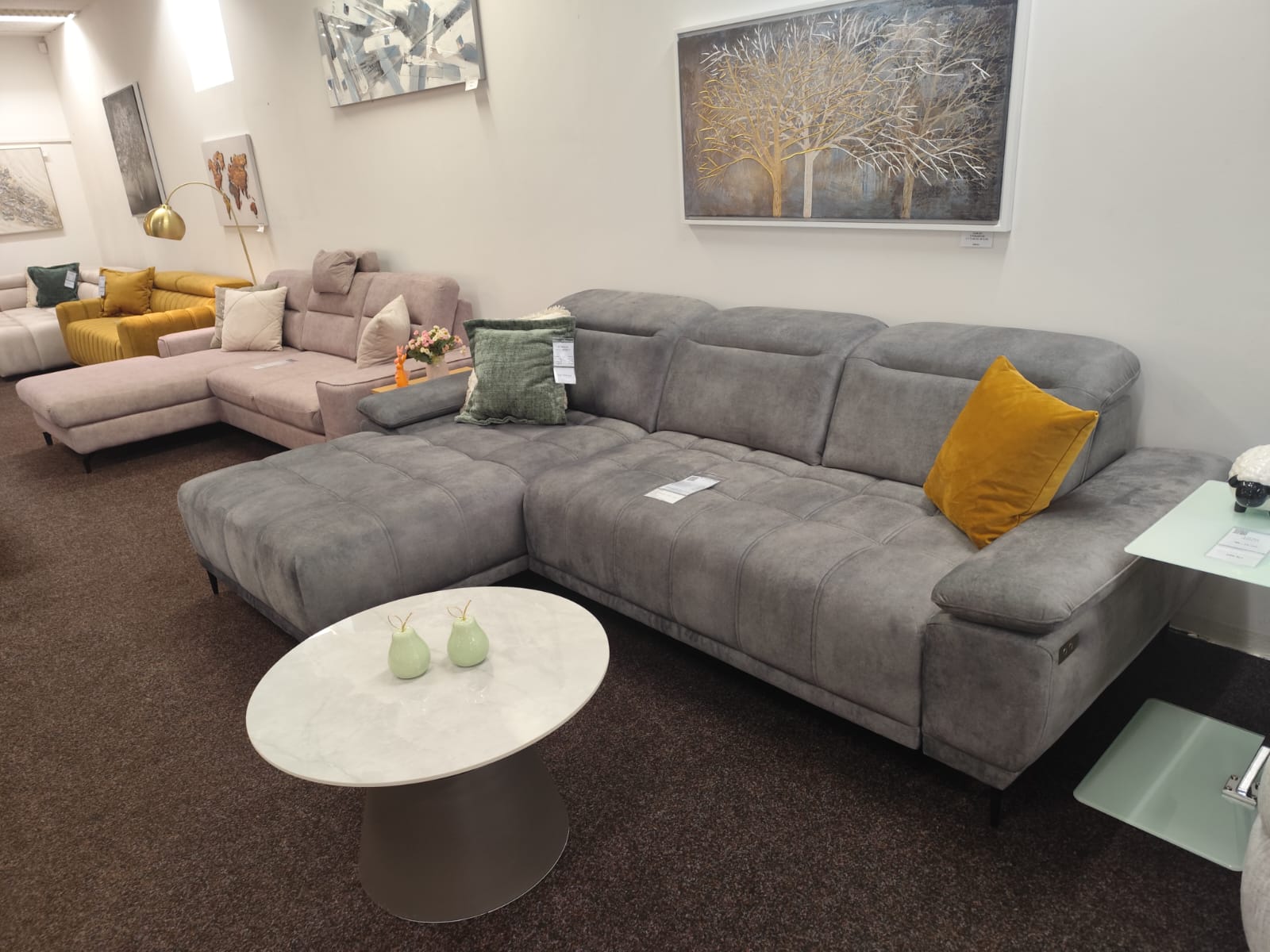 Coltar modern cu reglaj electric, tetiere reglabile, decor din lemn elegant si arcuri sinusoidale pentru un confort optim. Coltar cu reglaj electric FOCUS MINI, perfect pentru un living stilat si functional.