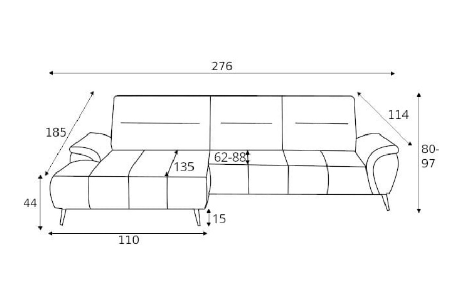 Coltar extensibil CHIVAS MINI cu cotiere reglabile, personalizabil 255x155cm